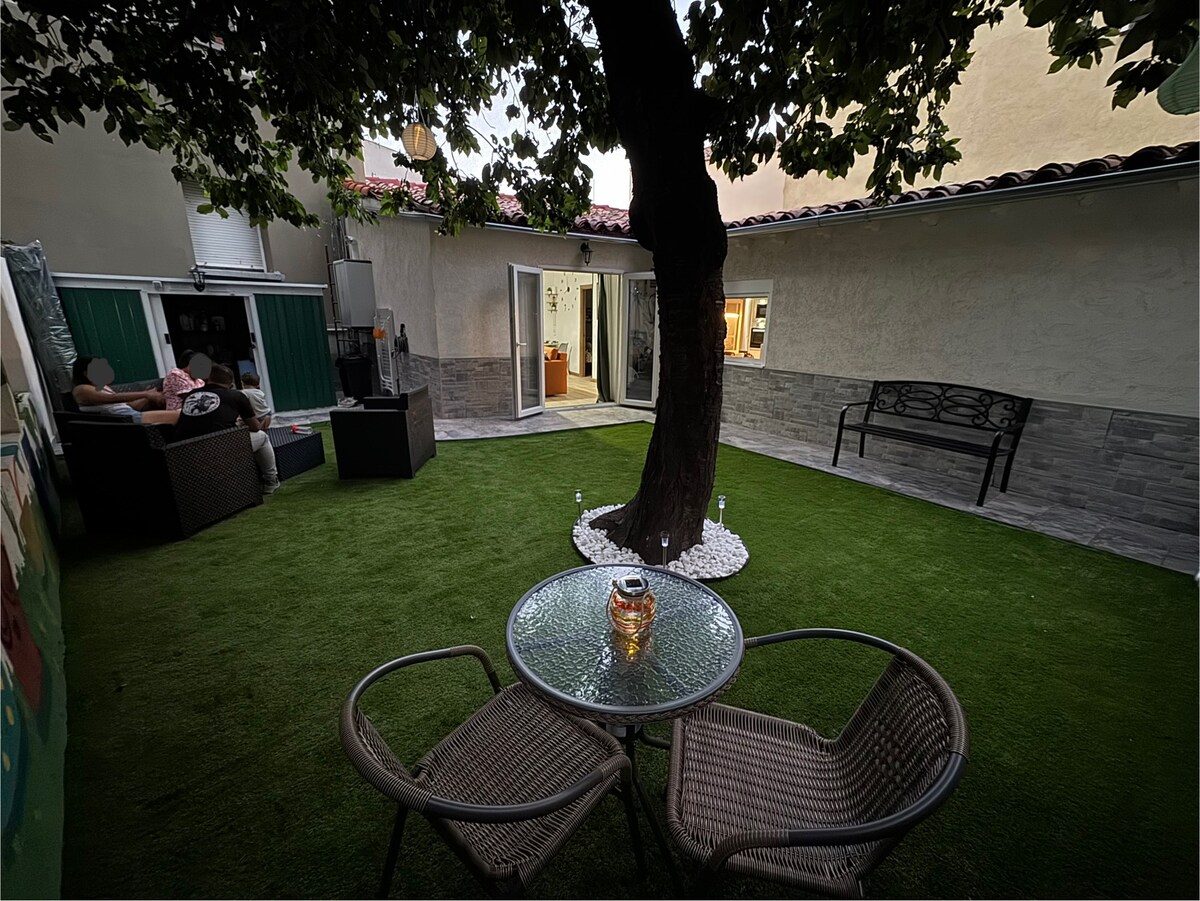 200 քմ տարածքով տուն և այգի: Օգտվեք տան սրտից, դրա մեծ տեռասից, ընտրեք, թե արդյոք կարող եք ճաշել ձեր խոհանոցում ՝ ողջ կենցաղային տեխնիկայով, ձեր հյուրասենյակում, տեռասի տեսարանով կամ ճաշել ձեր մեծ պարտեզում: Հանգստացեք 4 նոր կահավորված երկտեղանի սենյակներից որևէ մեկում և հանգստացեք ժամանակակից հիշողության սպունգով ներքնակների վրա: Լոգասենյակում ցնցուղ ընդունեք և զգացեք հատակի տաքությունը: Մոռացեք մեքենայի մասին ՝ այն պահելով ավտոտնակում