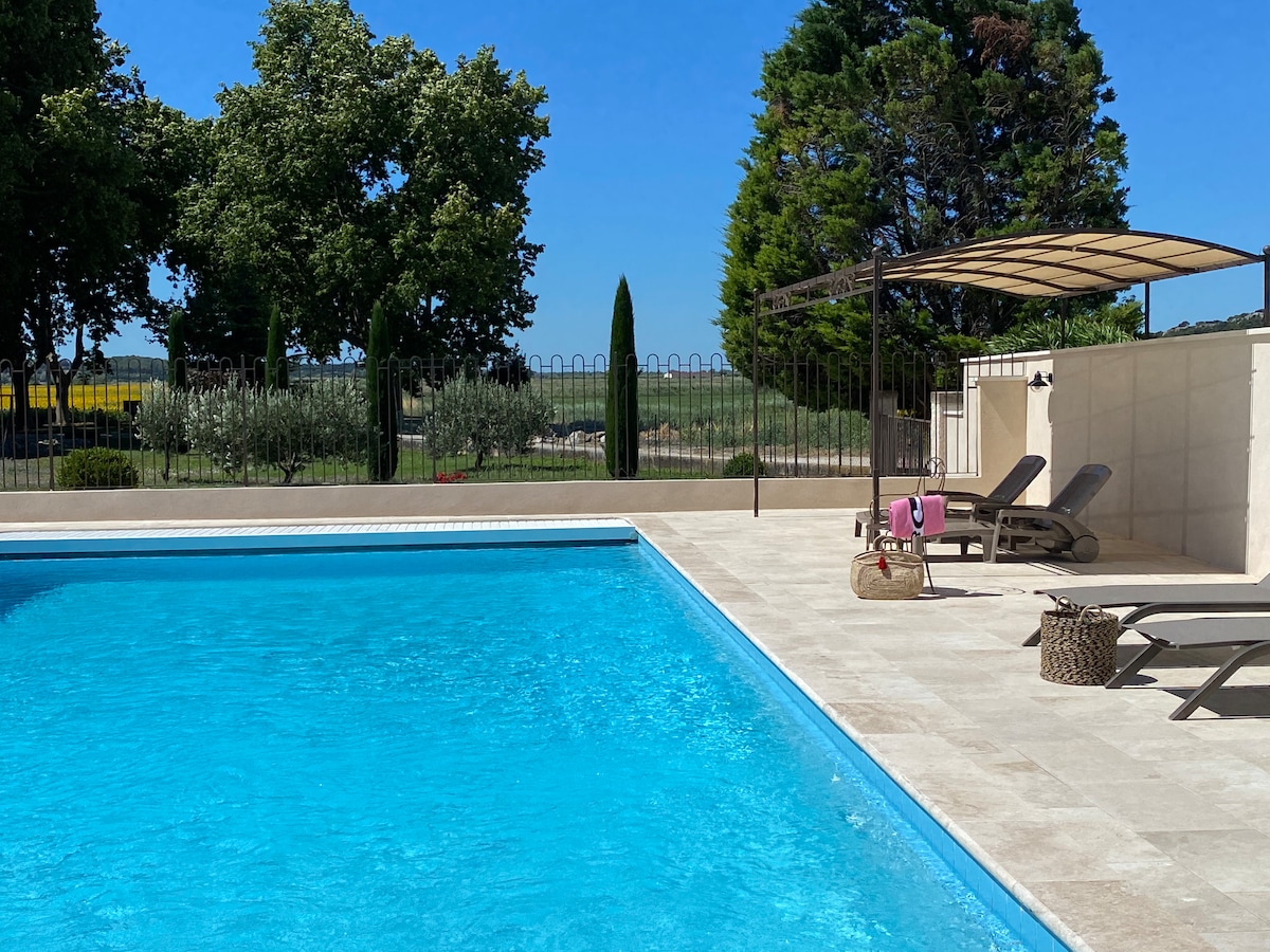 Idéal couple. Mas à la campagne : 4 appartements : 2 en bas et 2 à l'étage. Que vous soyez plutôt ombre ou soleil, chacun y trouvera son intimité. Caché des regards et à l'écart du tourisme de masse, vous serez en total déconnexion ! Chacun pourra librement profiter des extérieurs. Le parc, avec une vue imprenable sur le Mont Ventoux, les dentelles de Montmirail et le Luberon : est spacieux (15000m2). Les chaises, hamacs et transats sont nombreux.