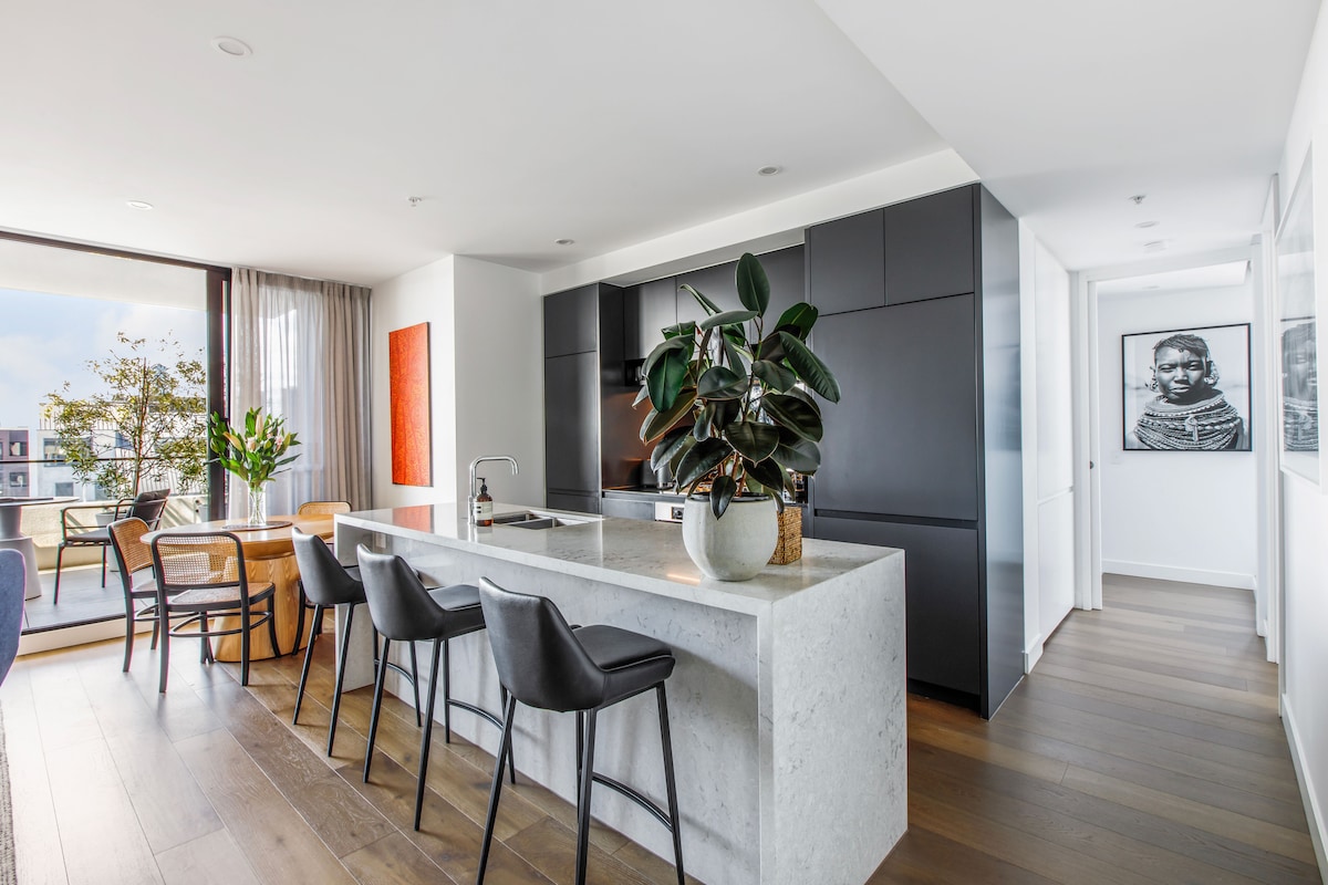 Այս նորակառույց, լուսավոր և նորաձև բնակարանը գեղեցիկ է հարդարված և գտնվում է հարմարավետ վայրում։ Ձեր դռան մոտ գտնվող տրամվայներով և գնացքներով կկարողանաք շրջել ամբողջ Մելբուրնում, իսկ Գլենֆերի փողոցը, որտեղ ռեստորանների և սրճարանների ընտրությունը անվերջ է, ընդամենը 2 րոպե հեռավորության վրա է։ Ուստի, գուցե, նույնիսկ, չանհրաժեշտ կլինի օգտվել գեղեցիկ կահավորված մարմարե խոհանոցից։ Կաբրինի թաղամասը հարմարավետորեն տեղակայված է փողոցի վերջնամասում։ Երաշխավորված լավ քուն Posturepedic Queen չափի ներքնակի և թարմ սպիտակ որակյալ սպիտակեղենի շնորհիվ։