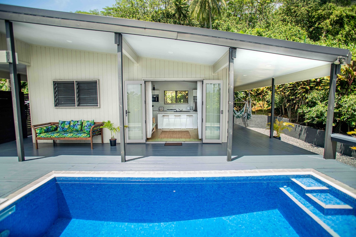 Հաճելի մասնավոր ինքնուրույնություն, օդափոխիչ,օդորակիչ, միջատներին ցուցադրված մասնավոր ստուդիա ՝ բոլոր անհրաժեշտ հարմարություններով ։ Դեպի ձեր սեփական ջրավազանը և ցանցաճոճերը նայող տեսարան ։ Այս ստուդիայում կա լավ կահավորված խոհանոց ՝ գազի ջեռոցով, միկրոալիքային վառարանով, սմարթ հեռուստացույցով, որը նայում է դեպի ձեր ընդարձակ տախտակամած, որտեղ կարող եք վայելել Webber խորովածի հարմարությունները : Բոլոր սպիտակեղենի փոփոխությունները պարունակող պահարան, լողավազանի սրբիչներ ։ Առաջարկելով ԱՆՎՃԱՐ ԱՆՍԱՀՄԱՆԱՓԱԿ WI - FI և Netflix PrimeVideo, Disney+ մուտք ։
