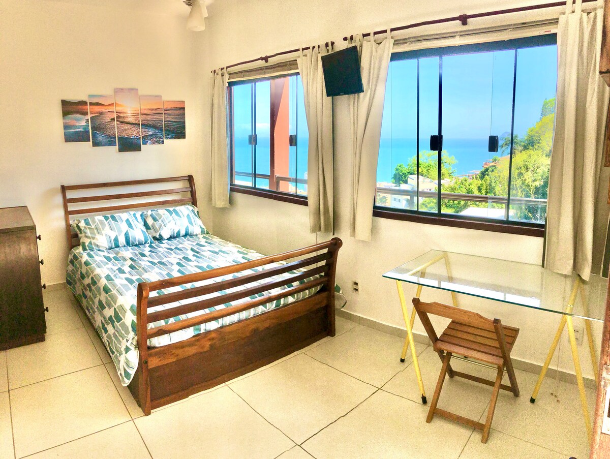 Attention lisez attentivement : Não fazemos desconto, por favor NÃO INSISTA Duplex studio neuf et désigné par un architecte : un seul lit double avec draps de qualité, un sofa convertible ( 1 place) et une Cuisine amenagée. Terrasse avec table et chaises. Immeuble de luxe avec salon et salle à manger collective, terrasse de Home Office avec wifi, laverie avec 4 machines à laver/sécher et Roof Top avec piscine collective et vue sur le Christ Redentor