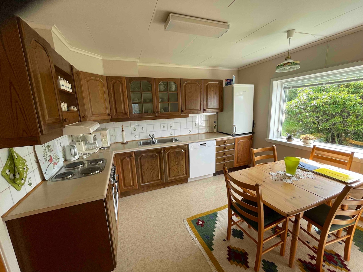 Ta med hele familien til dette flotte stedet med mye plass til moro. Ikke langt fra Norges nye motorsportsenter "Kroheia". Huset ligger 1 km fra Nesvåghålo. Matvarebutikk Kiwi og Coop Extra i Hauge sentrum, ca 8 km. Leiligheten er toppetasjen. Utleier bor i hovedetasjen.