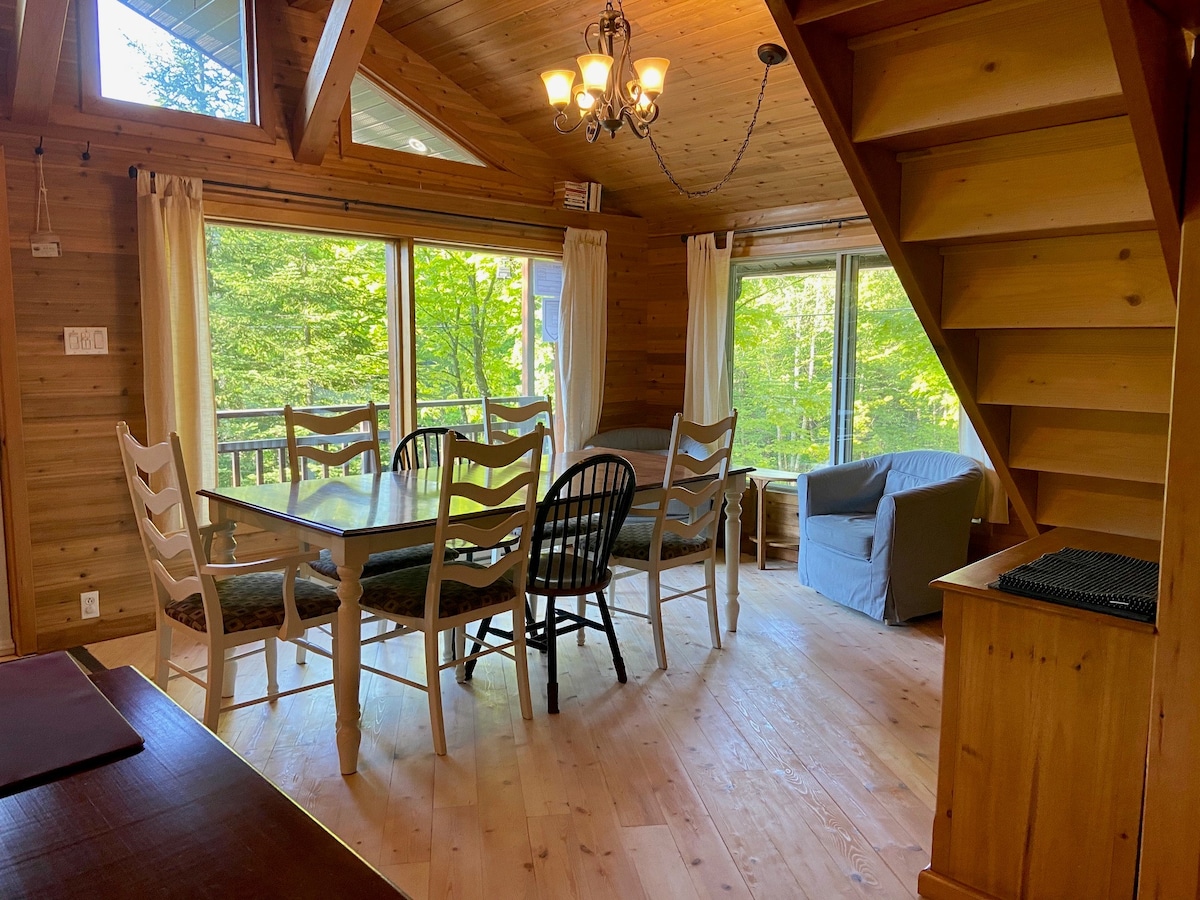 CITQ 300775. ★★★★★ TREMBLANT Central! Վայելեք իսկապես հմայիչ ժամանակ քաղաքից հեռու ՝ այս խաղաղ հանգստյան տանը, WI - FI ։ Հանգստացեք գետի հնարամիտ ձայնին: Վայելեք ջրի, ֆաունի և կենդանական աշխարհի հիասքանչ տեսարանները ։ Զգում մղոն հեռավորության վրա դեռ nestled ձեր շատ սեփական հարմարավետ շալե, ուղղակիորեն հին Mont Tremblant, 0.5 կմ հեռավորության վրա գծային արահետով. 6 րոպե. լեռնադահուկային հանգստավայր. Լա Diable գետի վրա, հանրահայտ թռչող ձկնորսական գետը. կանոնավոր ձկնորսություն թույլատրվում է նաև մեր տարածքում: EVs: Ստանդարտ բացօթյա 120 V ելք