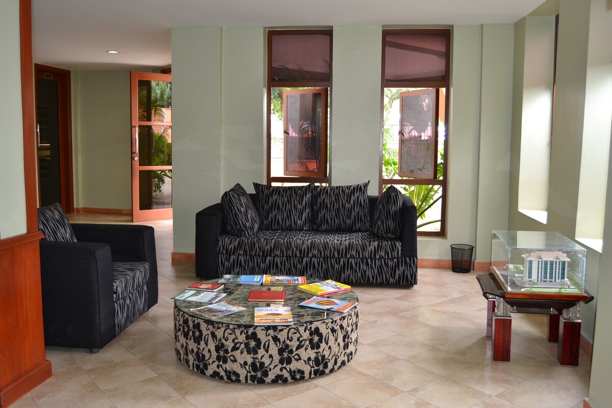 Առուշայի Նջիրոյի գեղեցիկ հարուստ թաղամասի սրտում է գտնվում Mrimba Palm հյուրանոցում ստեղծված գեղեցիկ խաղաղ միջավայրը: Այս հյուրանոցը հանգստության լավագույն ձևն է, որը հյուրերին հնարավորություն է ընձեռում զգալ ինչպես տանը ՝ վաղ առավոտյան վազքի և վազքի միջով կամ ուշ երեկոյան զբոսնելու համար: Հյուրանոցի տեղադրությունը կատարյալ փայտե դեկոր է, որն իր հետ բերում է հիանալի միջավայր: Հյուրի գոհունակությունը մեր ամենամեծ մոտիվացիան է ։ Խնդրեմ ։