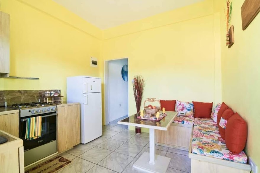 Մեր ստուդիան ամբողջությամբ պարունակում է «ես »- ը: Այն գտնվում է առաջին հարկում, այնքան հիանալի է երեխաների կամ նվազագույն քայլեր ցանկացողների համար: Ստուդիան մաքուր է, հարմարավետ և ընդարձակ: Այն ունի երկու ննջասենյակ: Մեկ մեծ մահճակալ (A/C - ով) և մեկ երկու առանձին մահճակալներով (առանց A/C): Ստուդիայում կա ցնցուղ, զուգարան և լվացարան ։ Տաք ջուր կա: Մատակարարվում են սրբիչներ և անկողնային պարագաներ ։ Խոհանոցն ամբողջությամբ ապահովված է սառնարանով, միկրոալիքային վառարանով, նոր գազօջախով, լվացքի մեքենայով: Մեծ տեռաս, որտեղից բացվում է հիանալի տեսարան ՝ ճաշելու համար ։