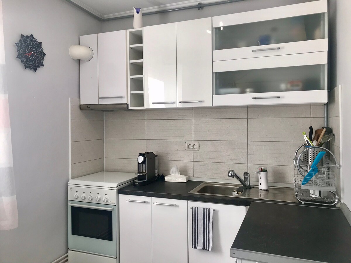 Կատարյալ վայր է զույգերի համար: Ժամանակակից ստուդիա, սկանդինավյան ոճ, վերջերս վերանորոգված, հարմարավետ, տաք և արևոտ օրվա մեծ մասը գտնվում է հանգիստ թաղամասում ։ Ոտքով 30 րոպե մինչև Հին քաղաքի կենտրոն կամ մեքենայով 10 րոպե ։ Դեպի քաղաքի կենտրոն տանող ավտոկայանը գտնվում է ընդամենը 100 մ հեռավորության վրա ։ Շատ ռեստորաններ, պանդոկներ, խանութներ գտնվում են մոտակա տարածքում (Profi, Carrefour, McDonald's )։ Բնակարանն առաջարկում է ընդարձակվող թախտ ՝ հարմարավետ հիշողության ծածկոցով, լիովին կահավորված խոհանոցով, ճաշասենյակով, սրճեփով, թեյնիկով և այլն ։