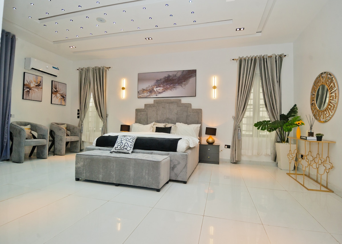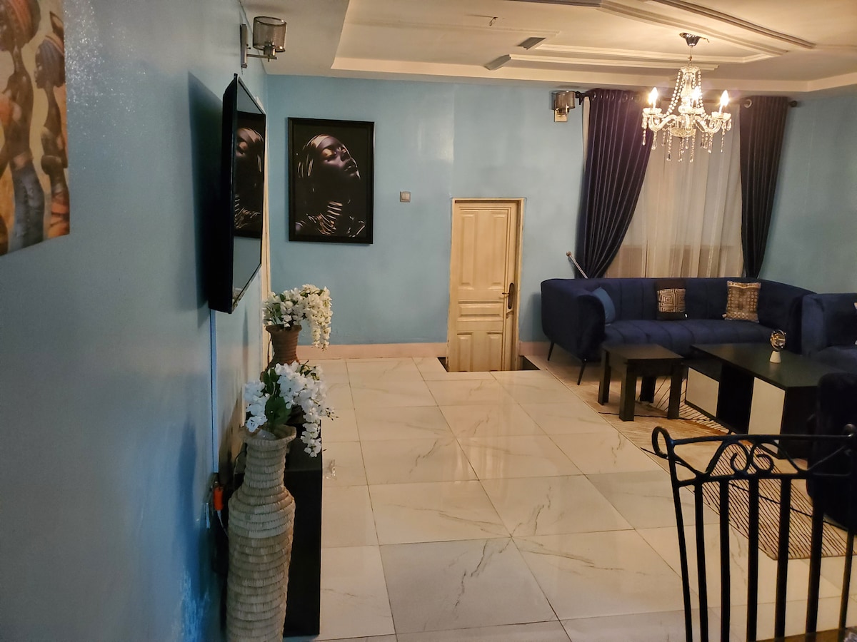 Բնակարանը ներառում է օդորակիչ, խոհանոցի պահարաններ, միկրոալիքային վառարան, սառնարան, լվացքի մեքենա, սալիկապատ հատակ, սմարթ հեռուստացույց և զգեստապահարան ։ Էլեկտրաէներգիայի մատակարարում ՝ արևային, ինվերտոր, NEPA, կանխավճարային հաշվիչ և գեներատոր ։ ԷԼԵԿՏՐԱԷՆԵՐԳԻԱՅԻ շուրջօրյա մատակարարում. ինվերտորը չի սնուցում օդորակիչ կամ սառնարան ։ Հյուրերը վառվում են գեներատորով ։ Վնաս չպատճառելու դեպքում կիրառվում է 30 000 ₦ նախազգուշական ավանդ ։ Շնորհակալություն ։