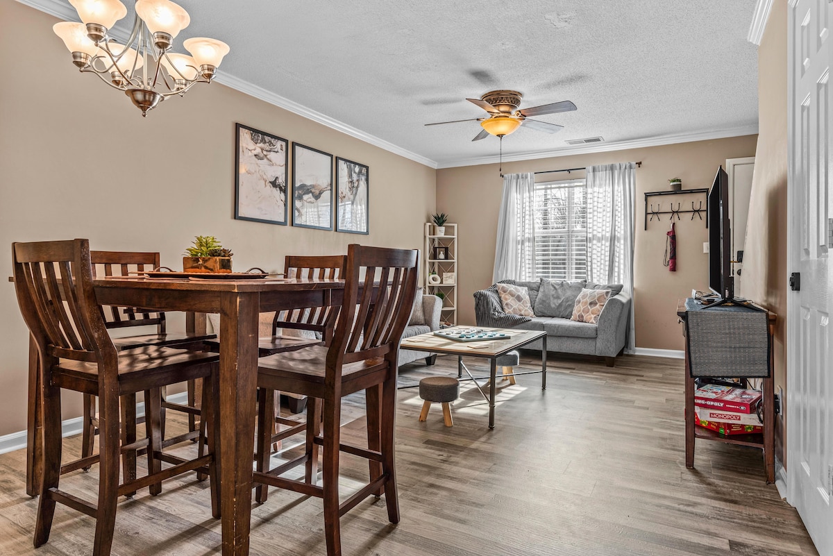 Վերանորոգված թաունհաուս՝ Ֆայվ Փոյնթս և Սենֆորդ մարզադաշտի մոտ Ընդարձակ 2 սենյակով/2,5 լոգասենյակով թաունհաուս Աթենքի սրտում։ Յուրաքանչյուր ննջասենյակ ունի առանձին լոգասենյակ և հեռուստացույց։ Վայելեք հեռուստատեսության ուղիղ հեռարձակում, հանգստացեք բացօթյա պատիոյում և անզուգական վայրում․ քայլեք դեպի Ֆայվ Փոյնթս ռեստորան և խանութներ, Սենֆորդ մարզադաշտ և Ջորջիա համալսարանի տարածք։ Որոշ գիշերներ նույնիսկ կարող եք լսել Redcoats խմբի փորձերը։ Կատարյալ է խաղային օրերի, կամպուսի այցելությունների կամ հանգստյան օրերի համար: