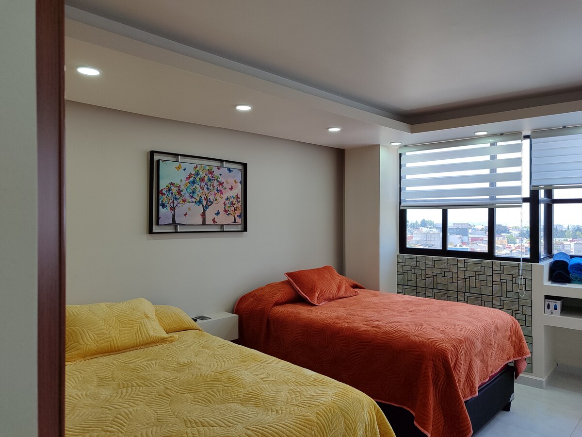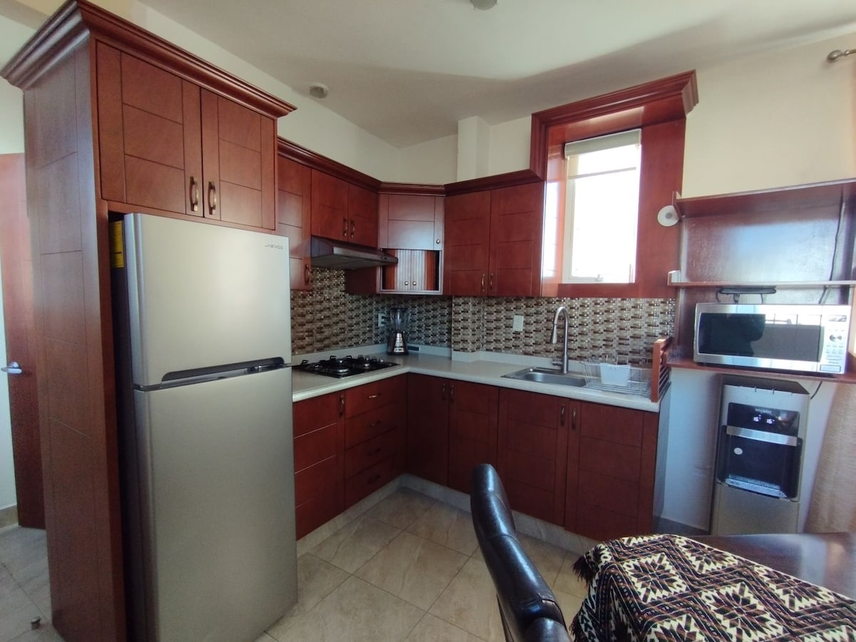 🔔 Reserve con anticipación Los viernes las fechas se bloquean a partir de las 5:00 p.m. y se desbloquean el sábado a las 6:30 p.m. 📶 Internet Megacable 🏡 Espacio tranquilo y elegante Hermoso departamento nuevo y totalmente equipado, con una vista preciosa. Nos encanta que te sientas como en casa; nuestro objetivo es que tengas una estancia cómoda y placentera. 🚗 El estacionamiento se encuentra a aproximadamente 75 metros de la propiedad.