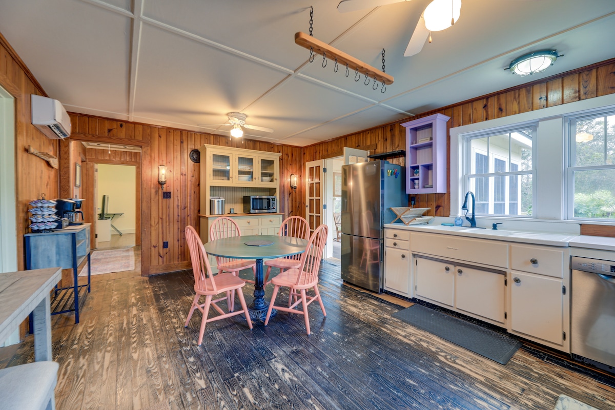 *Gorgeous bungalow in rural setting *Breathtaking Sunrises & Sunsets *Stunning water views overlooking Jarrett Bay *Sunroom 3 season porch * 2 bed, 2 bath Sleeps up to six guests on comfy mattresses * Launch your own boat or kayaks or rent across the street * Located 15-45 min to Beaufort, Atlantic Beach, Shackleford Banks, Cape Lookout, NC Aquarium * Game room, ping pong, foosball, yard games * Beach chairs, umbrella * Great location for Beach-goers, Duck Hunters, Cape lookout fishing *Fire Pit