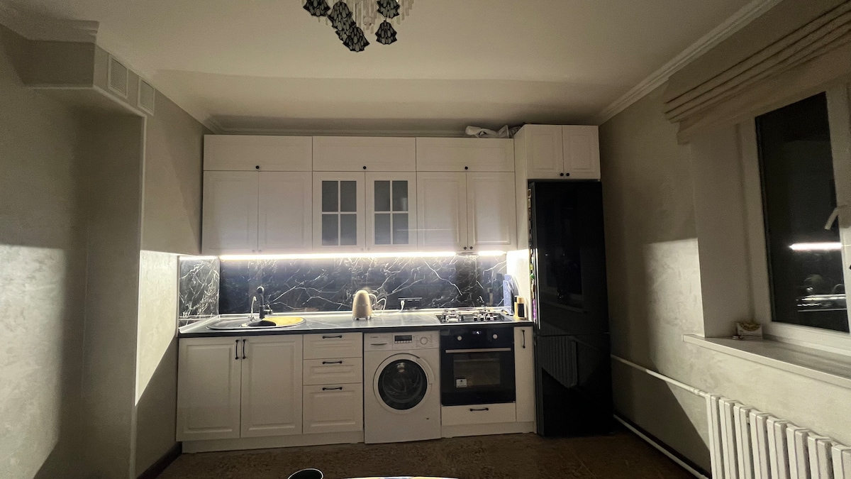 Жилье передаёт атмосферу домашнего уюта, находится в спокойном тихом дворике с футбольным полем, рядом находится магазины, супермаркет Лидер. Сам район в пяти минутах от конечной остановки, центрального стадиона, набережной и центрального бассейна, дома культуры. В самих апартаментах оснащено всеми удобствами(постельные, кухонные принадлежности)смарт ТВ-подключен MEGOGO. Кафе, кофейни, рестораны, сеть быстрых питаний DODO pizza все находятся в районе Жилгородка. Добро пожаловать!