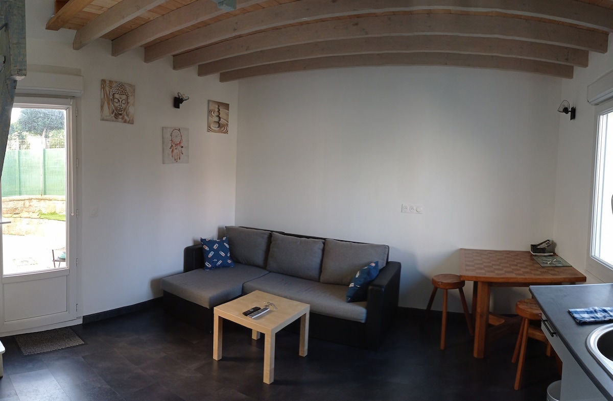 Տունը շատ մոտ է Դինանի կենտրոնին ՝ 300 մետր ոտքով ։ Վերանորոգված ստուդիա ՝ հյուրասենյակով, կահավորված խոհանոցով, առանձին ցնցուղով ։ Վերևում ՝ մեզանին ՝ երկտեղանի թեք մահճակալով, կախովի ՝ հանգստանալու համար ։ Մասնավոր տեռաս, որը կողմնորոշված է Հարավային Ամերիկայում ։ Անվճար վայրեր կայանելու համար: Գնի մեջ ներառված են անկողնային սպիտակեղեն, սրբիչներ և սրբիչներ ։