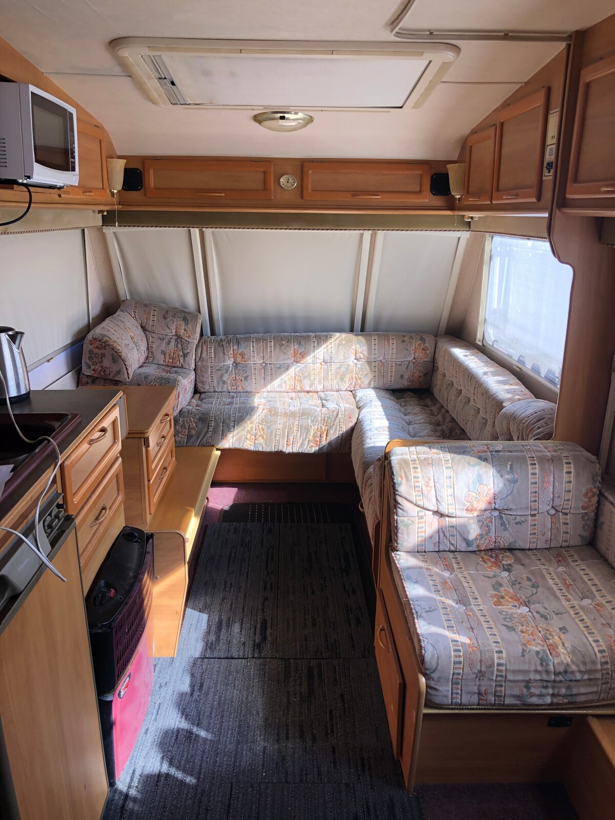 You’ll treasure your caravan holiday at this memorable central location. A recently renovated late 1960s caravan has been given a second life! Has a comfortable double bed at one end, area can be divided off. A wardrobe and office work area in the middle. A lounge area at the opposite end, which can be used as 2 single beds, (note one is shorter than the other). She is fragile as over 60 years old, so please treat her carefully! Has new electrical WOF. Kitchen, bathroom facilities in utility.