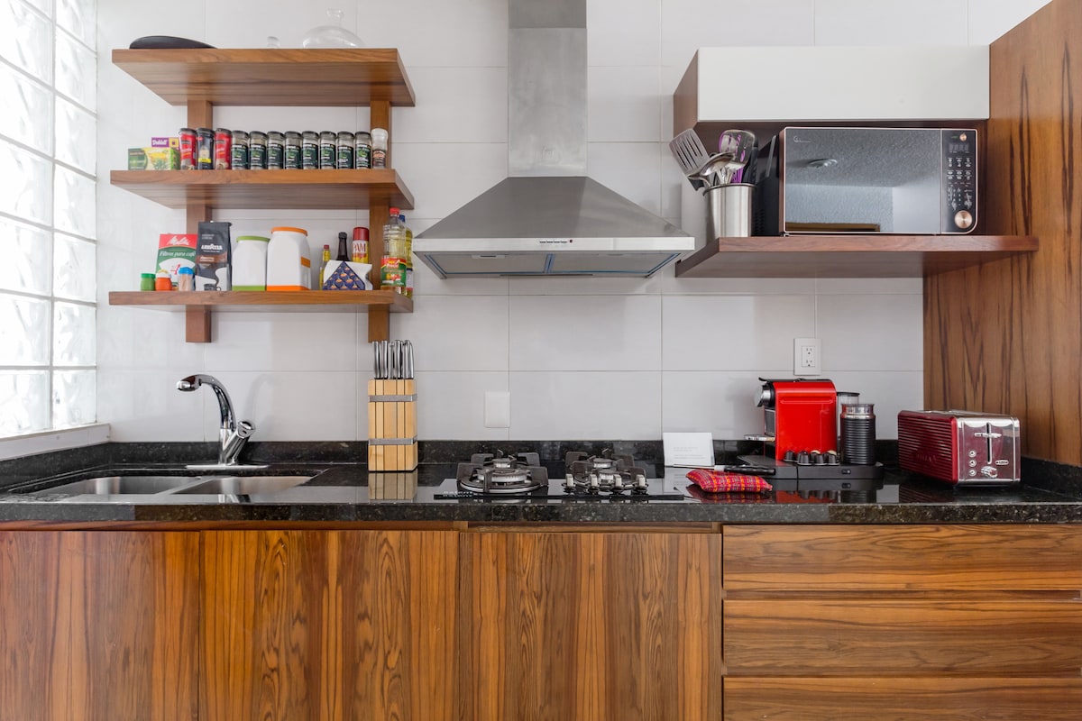 Ռոմա Նորտի այս նորաոճ բնակարանն առաջարկում է կատարյալ կարգավորում թվային քոչվորների համար ՝ գերարագ Wi - Fi, խնամված աշխատանքային տարածք և աստիճաններ Կոնդեսայի ամենաթրենդային սրճարաններից, ռեստորաններից և գիշերային կյանքից: Վայելեք բարձրակարգ հարմարություններ ՝ բիզնես կենտրոն, ամբողջական մարզասրահ, խաղասենյակ և ցնցող տեսարաններով տանիք ։ Մնացեք արդյունավետ, ոգեշնչվեք և զգացեք CDMX - ը տեղացու պես ։