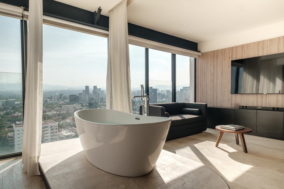 -Modern, brand new building -Rooftop terrace and brand new gym with views of Parque México and Reforma, -Fully-furnished unit designed for long stays and corporate travel -Free laundry facilities -Housekeeping service: Once a week for reservation of +7 nights Nido Parque Mexico is an incredible architectural accomplishment with the absolute best location in the entirety of Mexico City, on the corner overlooking Parque Mexico, in the heart of la Condesa. With a brutalist facade, ultra-modern in