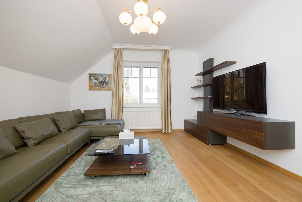 Վիեննայի արևմտյան ծայրամասում ՝ վիլլայի առանձին հատվածում գտնվող 3 սենյականոց բնակարան, որը գտնվում է վիլլայի առանձին մասում ։ Լավ հասարակական տրանսպորտի կապեր (գնացք և ավտոբուս) դեպի կենտրոն, 1 առանձին կայանատեղի տան դիմաց: Հարմարավետ ձմեռային այգի, հմայիչ Biedermeier սենյակ ՝ քինգզ մահճակալով, մեկտեղանոց մահճակալով և նստատեղերով: Ննջասենյակ (երկու դուռ )՝ երկտեղանոց մահճակալով և երկհարկանի մահճակալով: Հարմարավետ խոհանոց ՝ բազմոցով, ճաշասենյակով, ամանալվաց մեքենայով, ջեռոցով ՝ ներառյալ միկրոալիքային վառարան: Լոգասենյակը ներառում է զուգարան և ցնցուղարան: