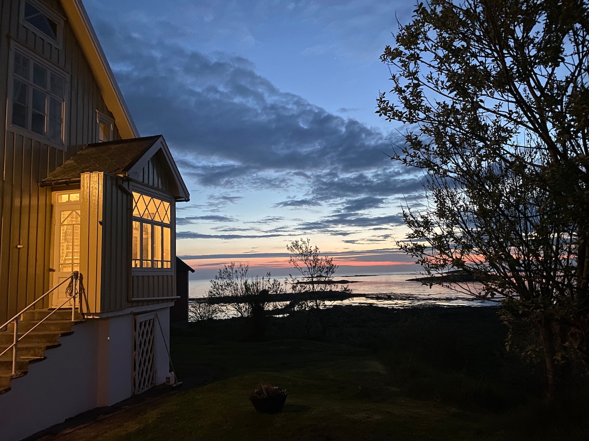 Det koselige tømmerhuset fra 1892 gir deg lun varme og ro, en unik utsikt og alle fasiliteter en moderne familie trenger. Den romslige uteplassen lar barn og voksne skue ut over storhavet, uansett om det er sol eller storm. I området kan du oppleve fantastisk natur og handle det du trenger i hverdagen.