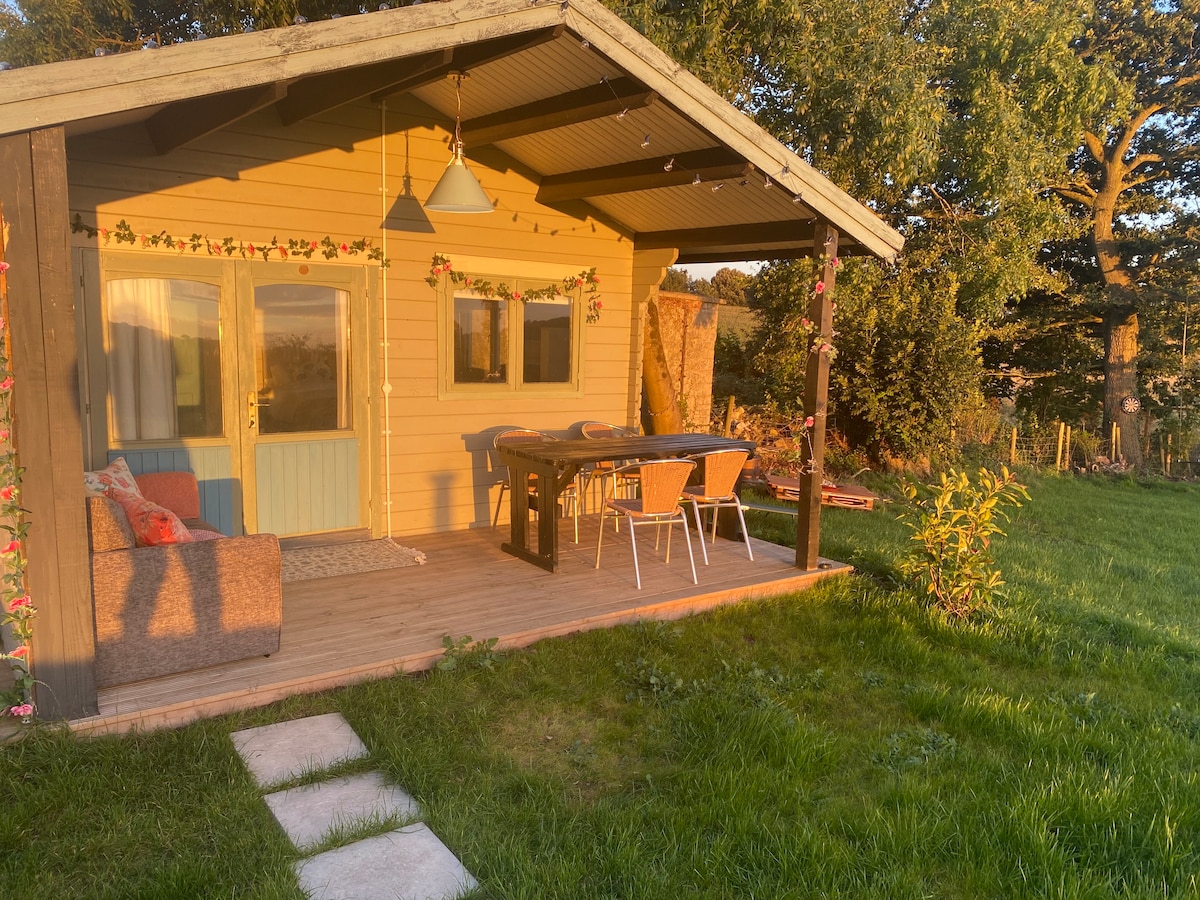Offas Dyke Cabin is set on a hill surrounded by organic countryside. The views of the Severn Estuary are spectacular, withThe Severn Bridge standing proud amongst it . . We are lucky to be located at the start or finnish of the historic Offas Dyke Path which offers beautiful walks and scenery. The cabin is walking distance to the local village pub which offers a hearty Sunday lunch. Chepstow Town centre with its quirky shops , restaurants and beautiful historical Castle are 5 minutes away .