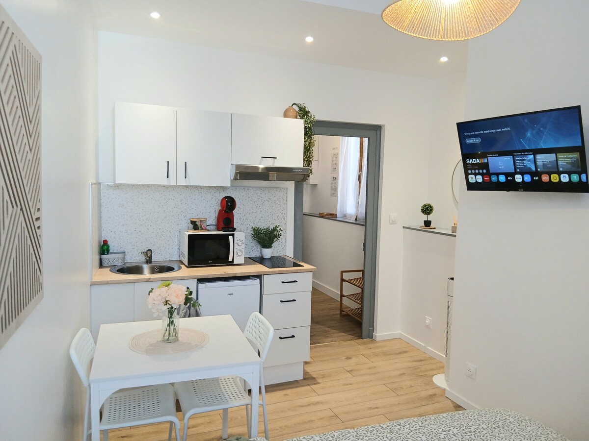 Բարի գալուստ «la buena suerte », գեղեցիկ բնակարան, որը վերանորոգվել է մեր գեղեցիկ միջնադարյան քաղաքում: Խաղաղ միջավայր պատմական կենտրոնի սրտում ՝ բոլոր հուշարձաններից և հարմարություններից 2 քայլ հեռավորության վրա ։ Auxerre - ում կամ Chablis - ում ձեր բուրգունդյան արկածների միջև կարող եք հանգստանալ արևոտ կտուրում, լոգարանում կամ պարզապես բազմոցին ՝ վայելելու ջրանցքը+ և ձեր տրամադրության տակ գտնվող բոլոր ծառայությունները ։ Առաջին մակարդակի մուտք, բայց մի քանի քայլ ։