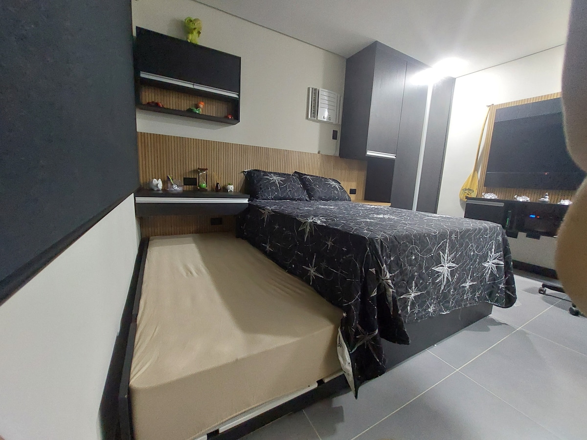 Բարի գալուստ ձեր հարմարավետ հմայիչ ստուդիան Սանտոսի ամենահմայիչ թաղամասերից մեկում ՝ Պոնտա դա Պրայայում: Իդեալական է զույգերի, գործնական կամ միայնակ ճանապարհորդողների համար ՝ մեր կացարանն առաջարկում է այն ամենը, ինչ անհրաժեշտ է հարմարավետ այցի համար. Մահճակալի և լոգարանի սպիտակեղեն ։ Շենքում ոչ բավարար հավաքական ավտոտնակ է ։ Ինտեգրված միջավայր ՝ հարմարավետ մահճակալով, պահարանով և հեռուստացույցով ։ Կահավորված խոհանոց ՝ պարզ կերակուրներ պատրաստելու համար ։ Լոգասենյակ ՝ հանգստացնող ցնցուղով և ջերմային սրբիչով ։ Կոմպակտ, գործնական և հյուրընկալ տարածք ։
