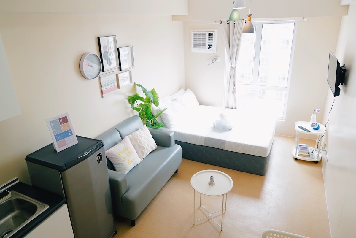 Մեր տարածքը գտնվում է կենտրոնում ՝ քայլելով հեռավորության վրա դեպի Ատրիա Պարկ Դիսթրիքթ, Որակավորված հիվանդանոց, Աթենո, Սեդա հյուրանոց և S&R Գնումներ: Այն մի քանի րոպե հեռավորության վրա է գտնվում Festive Walk - ից, SM City - ից, Plazuela - ից և Smallville - ից: Վարպետների ննջասենյակն ունի իր զուգարանը կամ լոգարանը: Երկրորդ սենյակում կա երկհարկանի մահճակալ ։ Երկրորդ զուգարանը կամ լոգարանը գտնվում է հյուրասենյակում ։ Տարածքում կա Wi - Fi, լվացքի մեքենա + չորանոց, ինդուկցիոն կաթսա, ջեռոց/տոստեր, միկրոալիքային վառարան, ջրի կաթսա, 55 դյույմանոց հեռուստացույց և տաքացվող ցնցուղ: