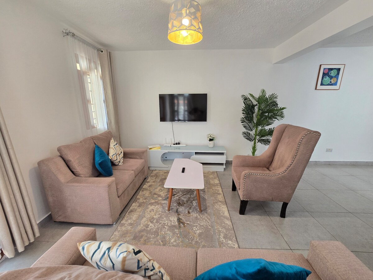 Բարի գալուստ մեր նորաոճ BNB Nati Apartment - ում, ձեր կատարյալ հանգիստը: Խելամտորեն կահավորված ժամանակակից դեկորով և գերհարմարավետ գարնանային մահճակալով ՝ հանգիստ գիշերների համար ։ Վայելեք արագ Safaricom Wi - Fi - ը, հանգստացեք գեղեցիկ տեսարաններով խաղաղ տարածքում և հանգստացեք ՝ իմանալով, որ օդանավակայանից և հիմնական ճանապարհից ընդամենը մի քանի րոպե հեռավորության վրա եք ։ Անկախ այն բանից ՝ այստեղ եք աշխատանքի, թե հանգստի համար, մեր գտնվելու վայրն աներևակայելի հասանելի է և իդեալական է սահուն, առանց սթրեսի մնալու համար ։