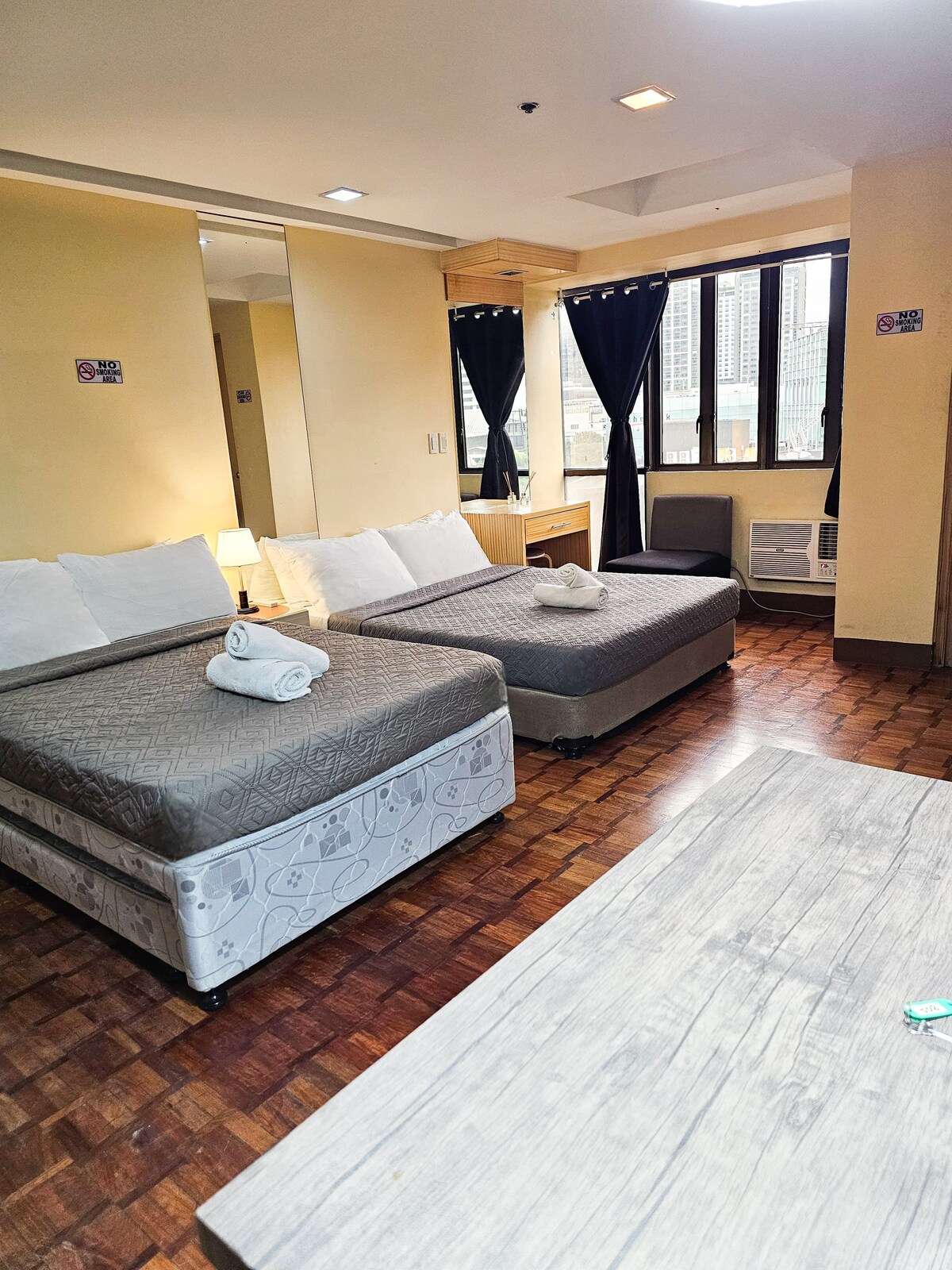 ՈՒՂԻՂ ԵԹԵՐ ։ Անկախ այն բանից ՝ գործնական ուղևորության եք մեկնում, այցելում եք ընտանիք, թե ճանապարհորդում եք Ասիայով, այլևս մի փնտրեք ։ Այն, ինչ ժամանակին եղել է մեկ ննջասենյակով կոնդոմինիումը, այժմ վերածվել է ընդարձակ մեծ ստուդիայի (քառասունութ քմ )։ Գտնվելով Ֆիլիպինների ամենաբարձր բնակելի շենքերից մեկում ՝ այն կարող է լինել ձեր տունը տնից հեռու ։ Եթե ձեր ընտրած ամսաթվերն ամրագրված են, կարող եք նաև իմ պրոֆիլի տակ աչքի անցկացնել մեր մյուս կառավարվող ստուդիաները ։