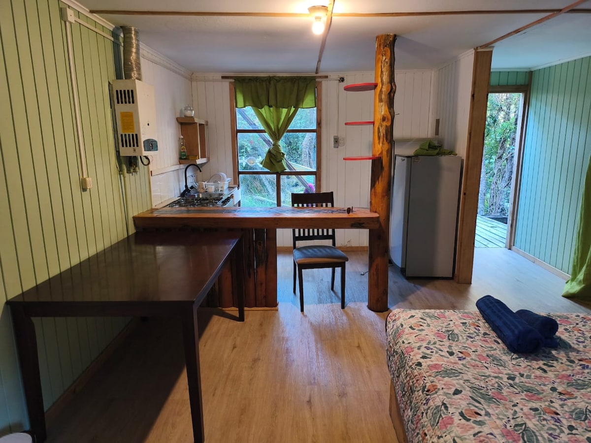 Հարմարավետ և գեղեցիկ անկախ տնակ ՝ երկու հոգու համար նախատեսված կայանատեղով, որը գտնվում է Coyhaique - ի կենտրոնից ընդամենը 4 թաղամաս հեռավորության վրա, որտեղ կարող եք գտնել հիմնական ծառայություններ, ինչպիսիք են ռեստորանները, դեղատները, սուպերմարկետները և մինի շուկաները և այլն: Տնակն ունի բոլոր հարմարությունները և լիովին կահավորված է, գտնվում է շատ հանգիստ թաղամասում, ունի տեռաս դուրս ՝ կիսվելու համար, իսկ պատիոյում ՝ բացօթյա հանգիստը վայելելու համար ։