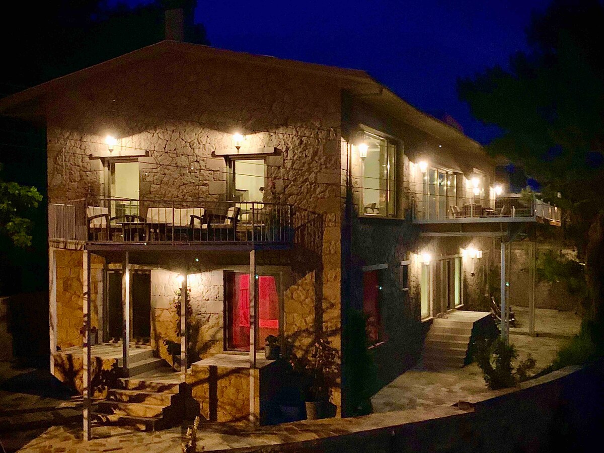 Լողափնյա տուն ՝ պատշգամբով և Լեսվոսի տեսարանով
