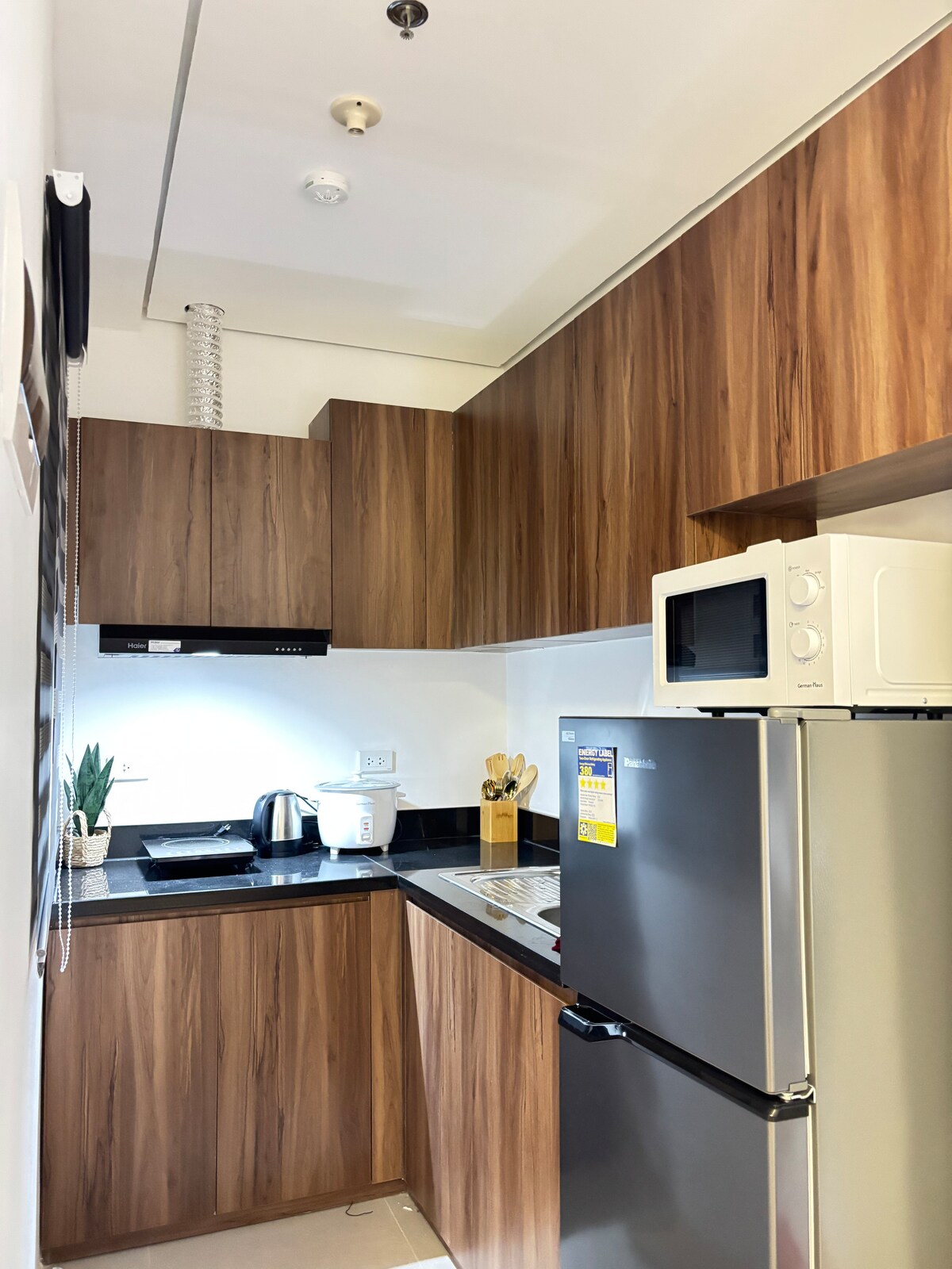 Studio-type Unit ▪️ 1 queen-size bed + 1 double-size sofa bed ▪️ Air-conditioning + electric fan ▪️ Light cooking allowed (no heavy cooking). The kitchen is equipped w/ an induction cooker, rice cooker, kettle, pots, utensils, & refrigerator ▪️ Dining table w/chairs ▪️ Private bathroom ▪️ Wifi ▪️ Google TV (connected via internet) Note: *Base rate applies to 2 guests. *Unit can accommodate up to 4 guests.
