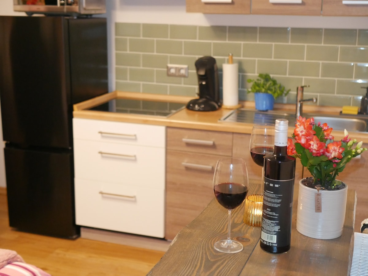 Ժամանակակից և ոճային բնակարան ՝ բարձրորակ սարքավորումներով ։ Վայելեք լավ քունը հարմարավետ զսպանակավոր մահճակալում (180x200 սմ) կամ նորաոճ հյուրասենյակի հարմարավետ բազմոցին: Լիովին կահավորված խոհանոցն առաջարկում է ամեն ինչ խոհարարության համար: Ժամանակակից լոգասենյակն ապահովում է հաճելի պահեր ։ Հանգիստ տեղադրություն, բայց լավ կապված ։ Կատարյալ է զույգերի, բիզնես ուղևորների և փոքր ընտանիքների համար Անպայման ։ Անհամբեր սպասում ենք ձեզ ։