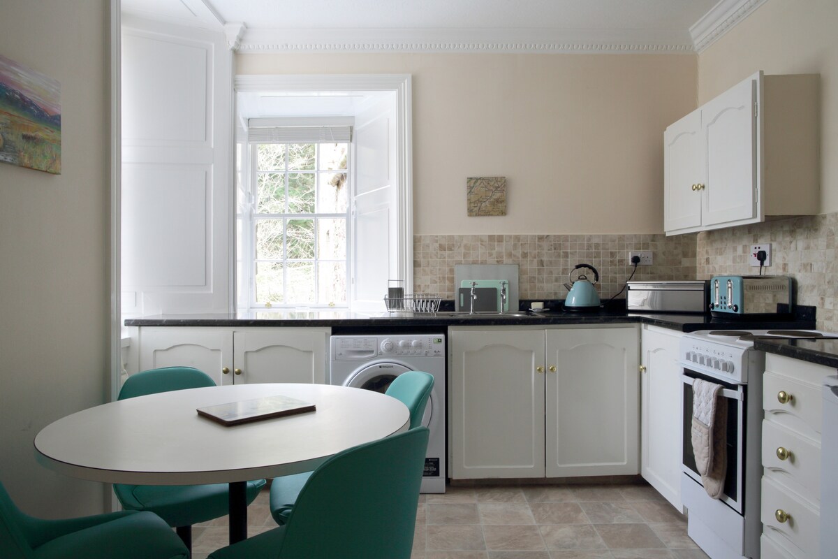 Հանգիստ սելֆին պարունակում էր առաջին հարկի բնակարան ՝ կահավորված խոհանոցով, որը կցված էր սեփականատերերի տանը ։ Առանձին կայանատեղի, մուտք դեպի հարավ գտնվող այգի ։ Քաղաքի կենտրոնից ոտքով հեռավորության վրա, Ժամանակակից արվեստի պատկերասրահներ, աշխույժ Ստոկբրիջի տարածք ՝ ռեստորաններով, բարերով, անկախ խանութներով և կիրակնօրյա զբաղված շուկայով: Թագավորական բուսաբանական այգիներին և Ինվերլեյթ զբոսայգուն մոտ: Մյուրեյֆիլդ մարզադաշտը գտնվում է հարթակից ոտքով 30 րոպե հեռավորության վրա: