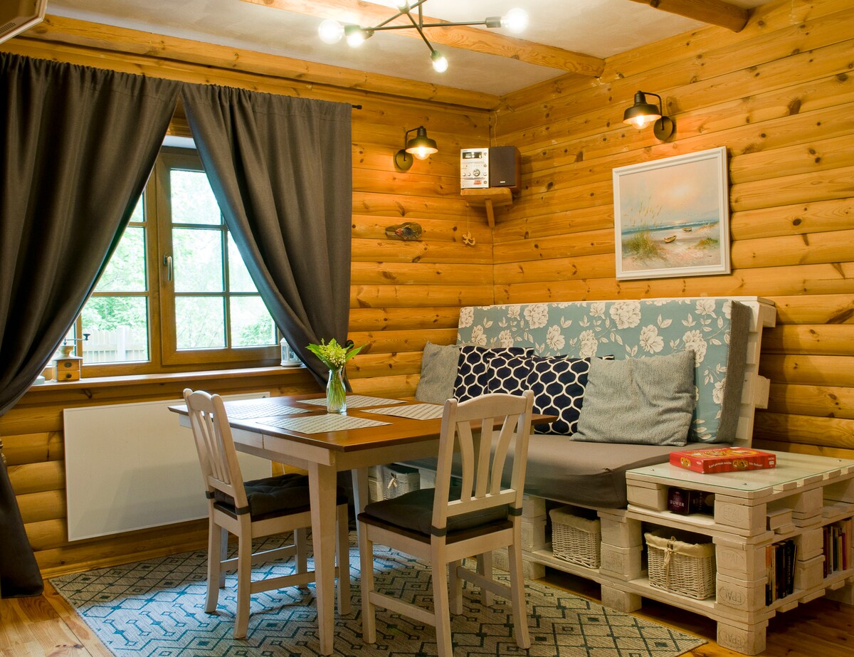 Հանգստյան տուն Բալթիկ ծովից 300 մ հեռավորության վրա ՝ ընդարձակ տեռասով ՝ ջակուզիով և խորովածով ։ Ներսում գտեք բաց բնակելի տարածք և սաունա առաջին հարկում ։ Երկրորդ հարկում կա երկտեղանի ննջասենյակ ՝ երեխաների համար նախատեսված լոֆթով ։ Սաունայի և ջակուզիի օգտագործման համար կիրառվում են լրացուցիչ վճարներ ։ Գինը նախատեսված է 2 մեծահասակի և 1 -3 երեխայի համար. լրացուցիչ վճարներ 3 - ից ավելի մեծահասակների համար ։ Գնանշման մանրամասների համար ստուգեք «այլ նկատառումներ »։
