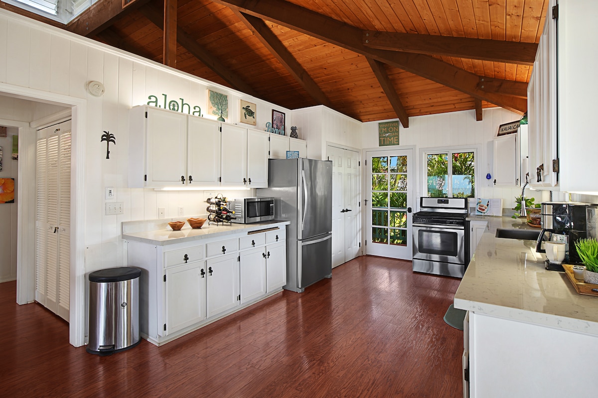 Պոյպուի սրտում գտնվում է 1 ննջասենյակով հարմարավետ վիլլա, որը գտնվում է Պոյպու լողափում գտնվող ամեն ինչի կենտրոնում ։ Մտեք ձեր տունը ՝ տնից հեռու, և ձեզ դիմավորեք լիովին համալրված խոհանոցով, որը լի է գազօջախով, ջեռոցով, սառնարանով, մանղալով (ընդհանուր տարածքներում) և բոլոր այն սարքերով, որոնք անհրաժեշտ են համեղ կերակուրներ պատրաստելու համար ։ Վայելեք լանաի վրա գտնվող որմնանկարը ՝ շրջապատված փարթամ կանաչապատ տարածքներով և բնության հանգստացնող ձայներով ։ Օդորակիչ ննջասենյակում ՝ 2025 թվականի հունվարի դրությամբ ։ *Jeep Grand Cherokee - ն հասանելի է վճարովի
