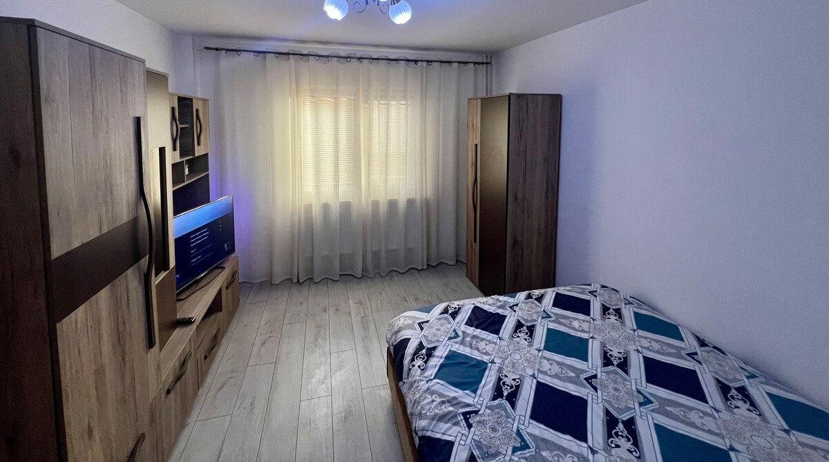 Ձեր ընտանիքը մոտ կլինի ամեն ինչին ՝ մնալով կենտրոնում գտնվող այս տանը ։ Բնակարանը 2 սենյակով է, տեղադրված է հանգիստ տարածքում, փողոցի վրա ։ Banca Nationala, որը շատ մոտ է քաղաքի բոլոր տեսարժան վայրերին. - Ոտքով 5 րոպե մինչև քաղաքի կենտրոն (600 մ) - 10 րոպե մինչև Arena Mall - 2 րոպե մինչև ավտոկայան - 3 րոպե մինչև Mega Image, մթերային խանութ, հացաբուլկեղենի գործարան և այլն ։ Ննջասենյակ ՝ 160x200 մահճակալով Հյուրասենյակում թախտ Հեռուստացույց Սառնարան, գազօջախ, սուրճի ապարատ Գրասենյակ