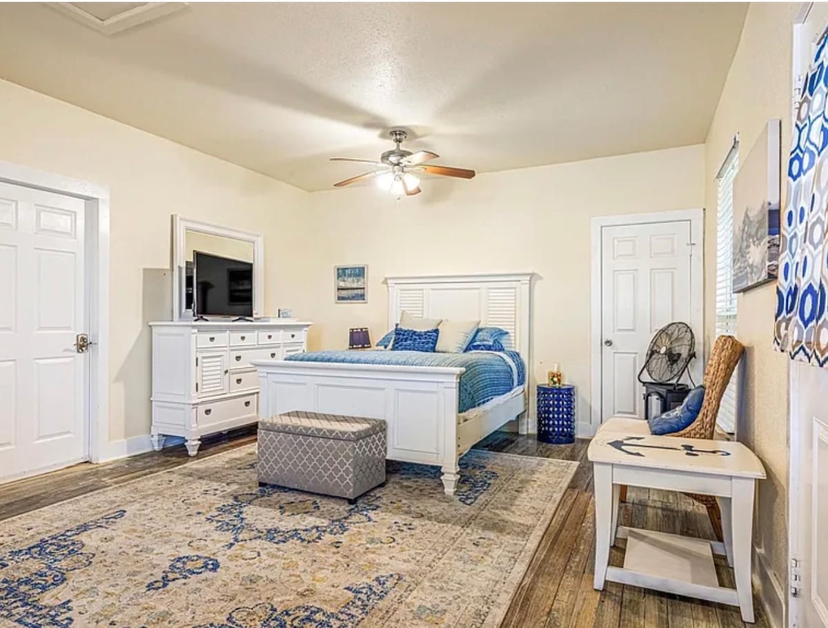 Բարի գալուստ Առաջին դեղին դուռ ։ Հանգստացեք այս խաղաղ բնակարանում ՝ ծովածոցից 3 րոպե հեռավորության վրա, իսկ Strand - ից ՝ 7 րոպե հեռավորության վրա ։ Գեղեցիկ վերանորոգված, նոր կենցաղային տեխնիկա, երկտեղանի մահճակալ և փրփուրով քնելու բազմոց ։ 65 դյույմ սմարթ հեռուստացույց, խաղեր, փայտե հատակներ և ձեզ անհրաժեշտ բոլոր հիմնական պարագաները ։ Առանձին մուտքով տարածք և շատ հմայք ։ Աչքի անցկացրեք մեր մյուս հայտարարությունը ։ Ժամանակակից տուն, որտեղ քնում է 6+ Մենք կարող ենք բացել հետնաբակի ցանկապատը ՝ սեփականությունները միացնելու համար, եթե երկուսն էլ հաջորդաբար ամրագրեք: airbnb.com/h/thegreenhousegtx