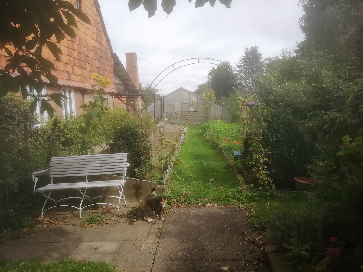 Hello, our quite town Seesen is at the west edge of the lovely Harz mountain region. The forests, lakes and mountains invite you to spend some time in nature to either just relax or to try some activities such as hiking or mountain biking. In the middle of Germany this is probably one of the most diverse and beautiful regions! Our 33 square-meter-sized apartment has a separate entrance and an own terrace in our large garden. I am looking forward to welcome you as my guests :)