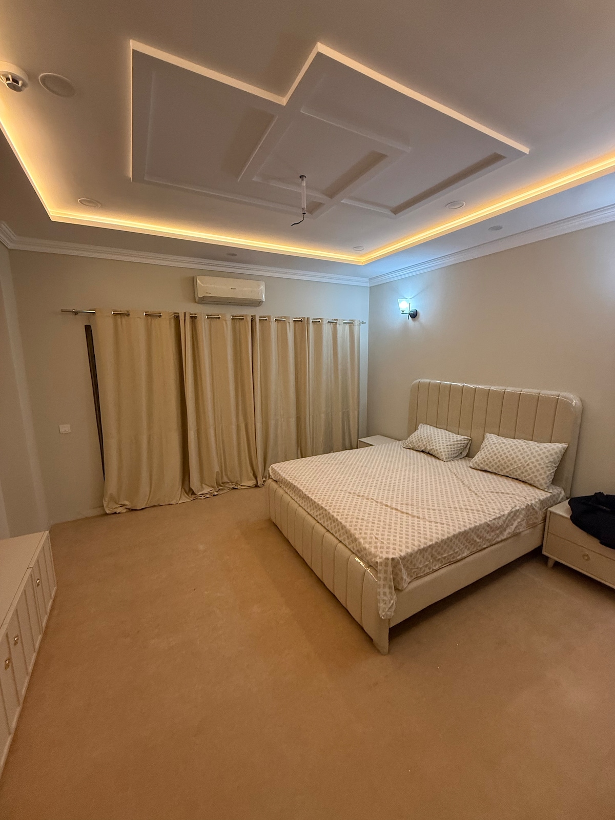 Escape to our serene bedroom oasis, perfectly suited for couples and small families seeking a relaxing getaway .Enjoy a comfortable night's sleep in our cozy bedroom . The apartment features a comfortable bed, a well-equipped kitchenette, and a fully smart tv, air conditioner, 24/7 internet, electric heating rod for hot water. Located in a prime location, you'll have easy access to nearby attractions such as imtiaz mall, Buch international hospital, cinema and restaurants .