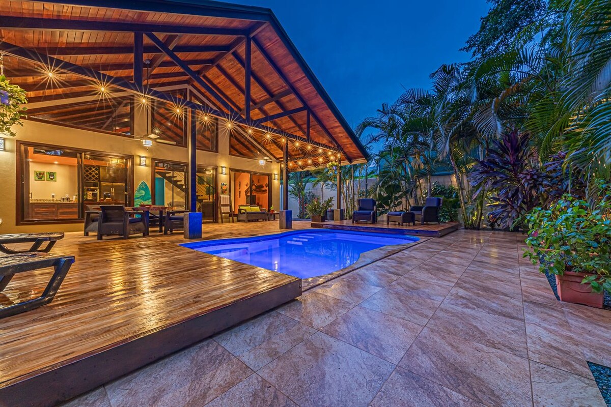 Open-concept villa equipped with all the comforts of home; fully stocked kitchen, smart TV, BBQ, plunge pool, wifi, and a private terrace/backyard. End a perfect day by sinking into the luxurious King bed, raved by guests as the comfiest bed in town. NO visitor policy and PLEASE no children/babies permitted. No 4X4 needed. Walking distance to shops, restaurants, banks, grocery stores, a short drive to Marino Ballena National Park and the most beautiful beaches!