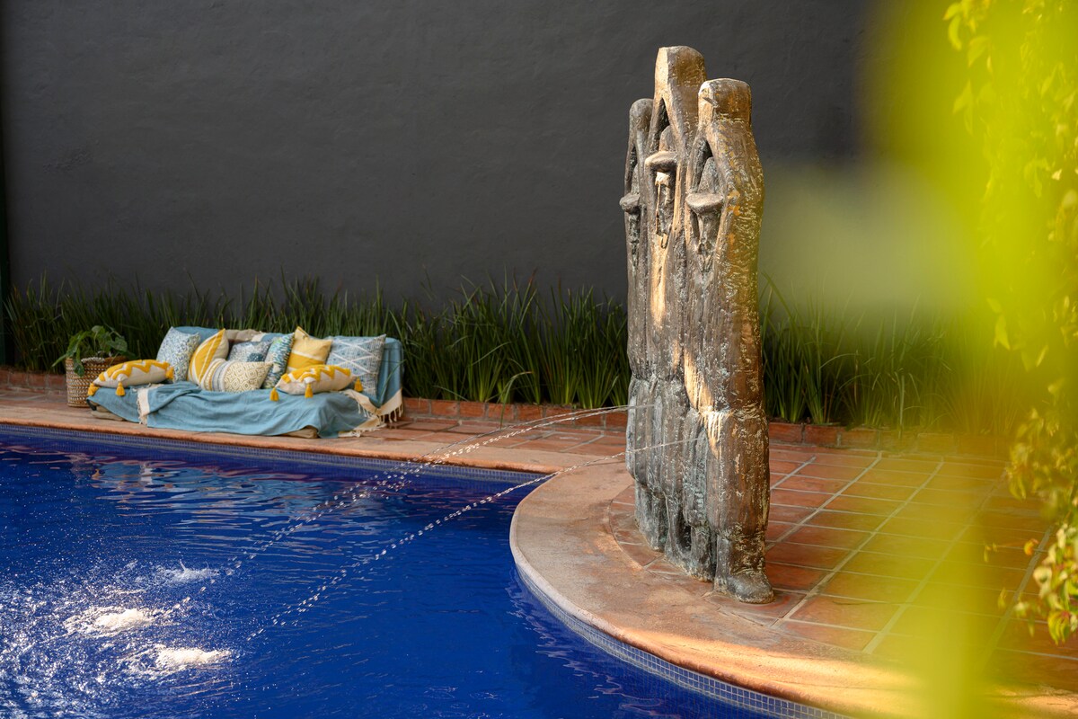 Discover the perfect harmony between tradition and modernity in our Mexican-style studio. With spacious green areas, internet, television, induction stoves, air conditioning, and a recreation area with a pool table. We also allow one small or medium size dog! We do not only provide a cozy home but also the option to host your special celebrations. We offer event services for weddings or other occasions in our beautiful green spaces.