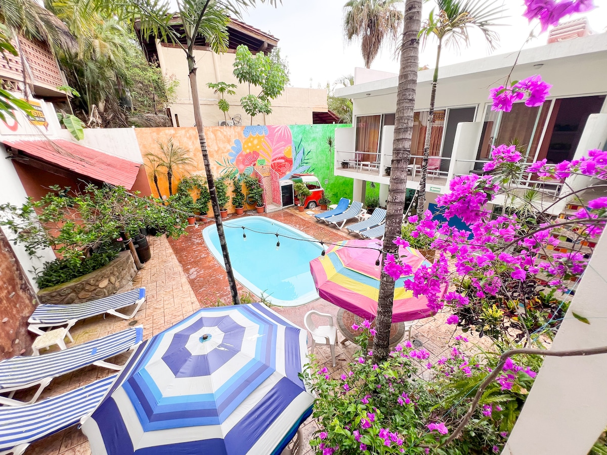 **Weekly and Monthly Deals Available For Extended Stays** Welcome to ITH Sayulita Amazing Hostel! We are your Sayulita escape for a cozy and friendly hostel connecting you with the best bucket-list experiences you have to live when visiting our beautiful surf town. Our staff of ultimate hosts will ensure you have a relaxing stay filled with great local adventures. Immerse yourself in the Mexican vibe with colorful decor & explore Sayulita's magic! The fun begins when you arrive in Sayulita!