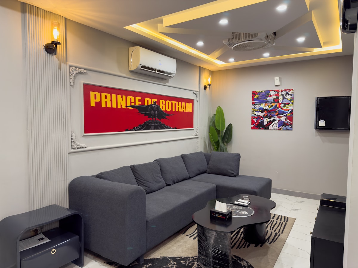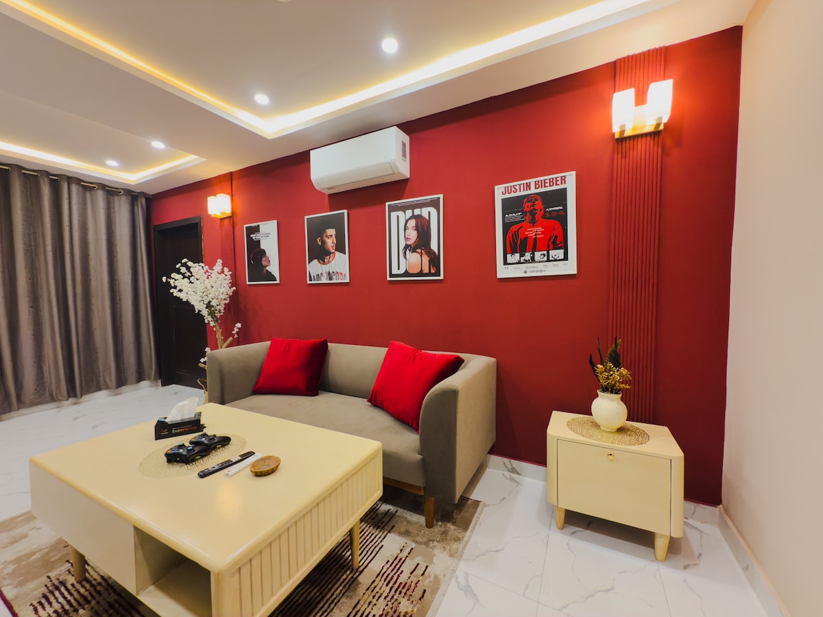 Discount for long stay Experience refined living in this elegant one-bedroom apartment, located in the heart of Bahria Town, Sector C – just steps from Talwar Chowk. Designed with modern interiors and premium amenities, the apartment offers a serene escape while keeping you close to vibrant shopping, dining, and entertainment. Whether you’re visiting for business or leisure, this stylish space promises comfort, privacy, and luxury