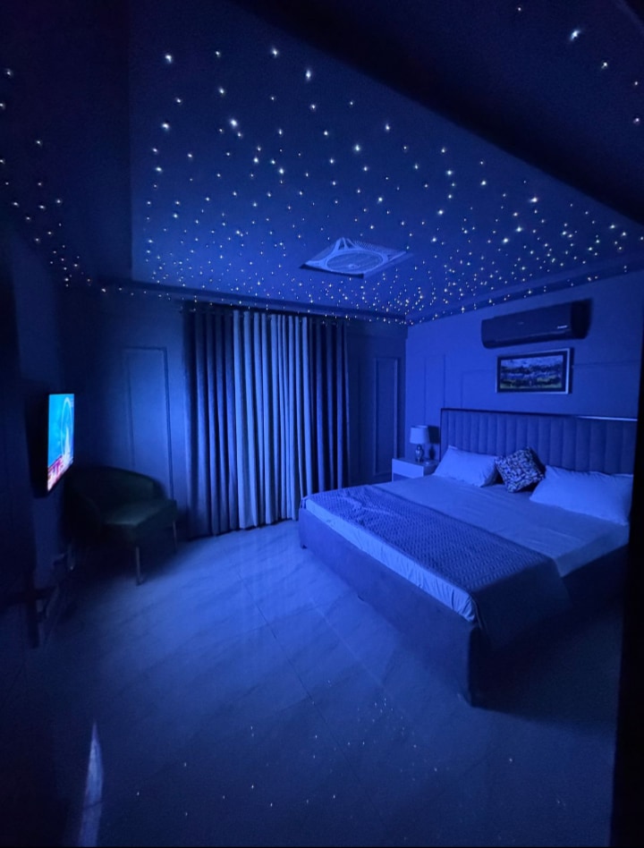 Experience a designer crafted apartment built for comfort and style. Located in a peaceful, secure area, it features a private terrace with beautiful views, a plush bed, 55 inch TV with Netflix and elegant lighting. The fully equipped kitchen includes a German stove, big fridge to store your snacks , kettle and LG washer. A unique monarch modern theme, mural wallpaper and premium décor create a perfect space to relax and enjoy your stay