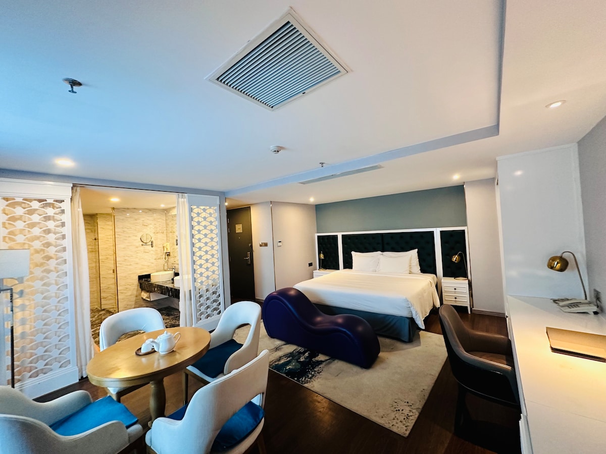 This is the choice for couple with 1 bed room and 1 living room connect to each other, and a bathroom with bathtub. Located in the buidling of Maris Hotel Nha Trang in the central, 200m to the beach where you can enjoy the vibe with restaurants, spa, pub nearby. Breakfast is included everyday from 6:30am to 9:30am at the restaurant of the hotel on the 2nd floor. You have access to the pool & gym on the 21st floor, and chill out at our public rooftop bar.
