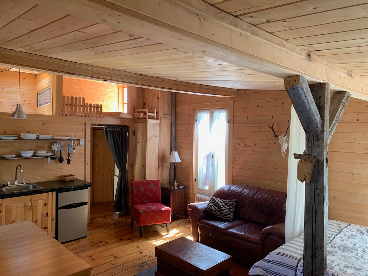 Սկանդինավյան փոքր շալե երկու հոգու համար, որոնք իդեալականորեն գտնվում են ՝ վայելելու Charlevoix - ի տեսարժան վայրերը ։ Այն ունի ջերմային միացում (ջակուզի, շոգեբաղնիք, համամ) Շատ մտերմիկ և անտառների մեջտեղում, տեսարանը նայում է վեհաշուք գետին և հեռվում գտնվող լեռներին: Բոլոր ժամանակակից սարքավորումները կան, իսկ հարմարավետությունը ՝ բացարձակ A/C և բացօթյա բուխարի ։ Բաց կոնցեպտի դիզայնը նախատեսված էր բնության մեջ խորասուզված փորձառության համար ՝ մեծ պատուհաններ, համայնապատկերային ցնցուղարան: Մուտք գործեք մասնավոր ճանապարհով ՝ 500 մ բարձրության վրա ։
