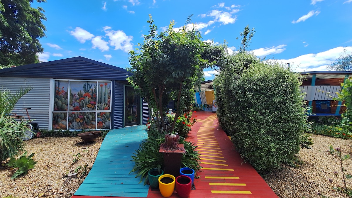 Տնային կենդանիներ դիմավորում. ՄԻԱՅՆ ԲԱՑՕԹՅԱ, մեծ փակ բակ ՝ ստորգետնյա տարածքով ։ Անհավանական և յուրահատուկ տեսարաններ այս արտասովոր 3 ննջասենյակով քոթեջից, որը շրջապատված է ալիքավոր ագարակային տեսարաններով Բայրսդեյլի CBD - ից ընդամենը 10 րոպե հեռավորության վրա: Կատարյալ է ընտանիքների, զույգերի, աշխատողների, բուժաշխատողների համար ։ Տեղավորվեք աշխատող ագարակում, վայելեք հեռանկարը և ողջունեք երկրի այցի ձայները: