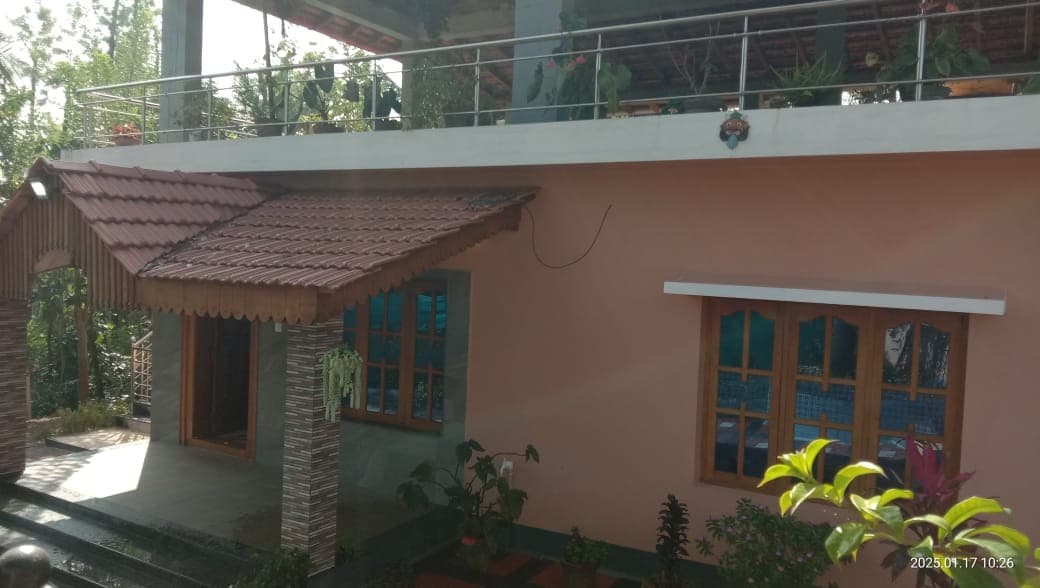 Veg Only 🍃 Welcome to our cozy farm stay nestled amidst a lush coffee plantation in the Western Ghats of Karnataka. Our farmhouse offers a rustic and authentic experience, surrounded by rolling hills. Our farm stay features two bedrooms, a living room, and a kitchen. Guests can wake up to the sound of birds singing and enjoy a cup of locally grown coffee. During your stay you can visit nearby places, or simply relax and rejuvenate in the peaceful coffee estate surroundings.