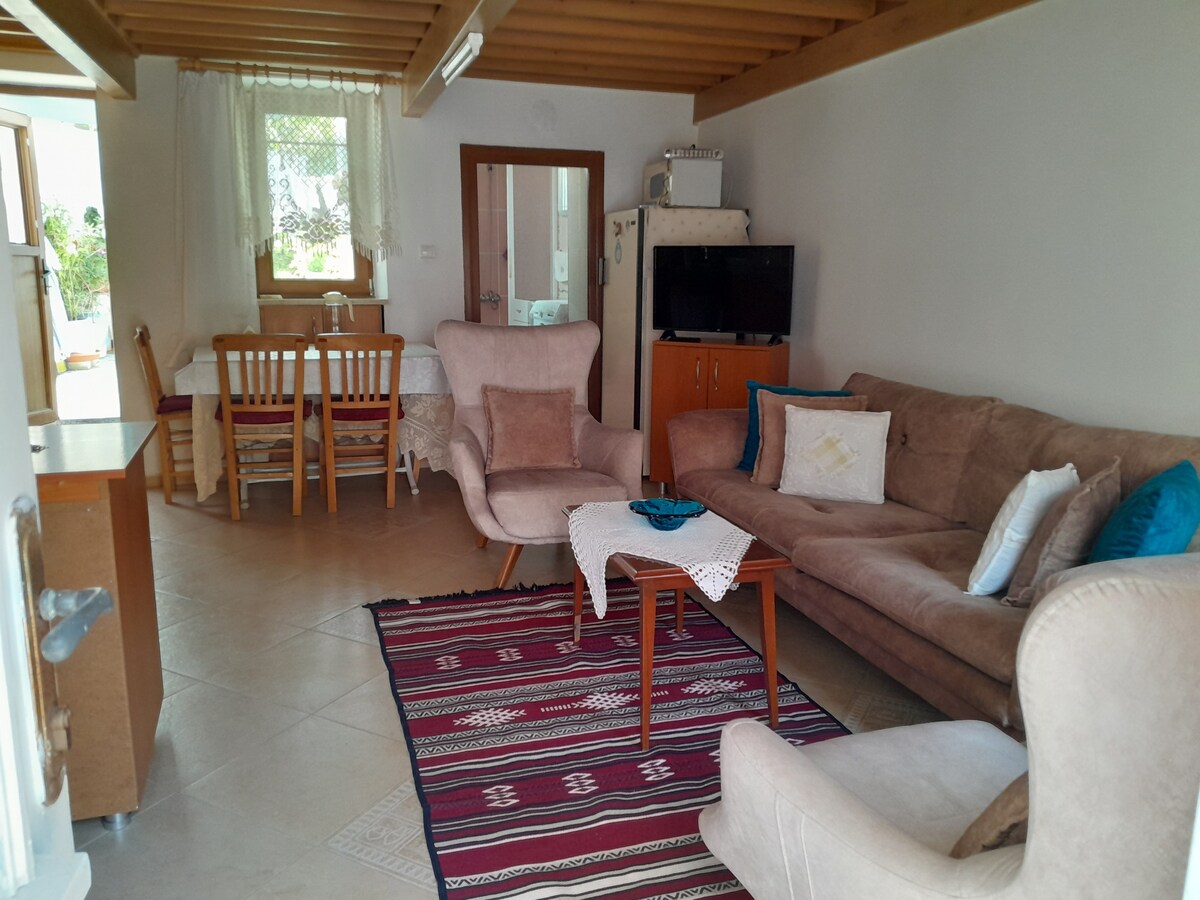 Առանձնացված քարե տուն մասնավոր պարտեզում ՝ ծովից 3 կմ հեռավորության վրա, բնությամբ շրջապատված, Կազ լեռների ստորոտում, Չանակկալե Ասոսում, որտեղ կարող եք հանգիստ և անվտանգ մնալ ձեր ընտանիքի հետ: Այգու հատակի բնակարանը և պարտեզն ամբողջությամբ մեր հյուրերի համար են ։ Քարե տան վերին հարկը վերևից անկախ մուտքով բնակարան է, որտեղ ընտանիքի անդամները մնում են որոշակի ժամանակ ։