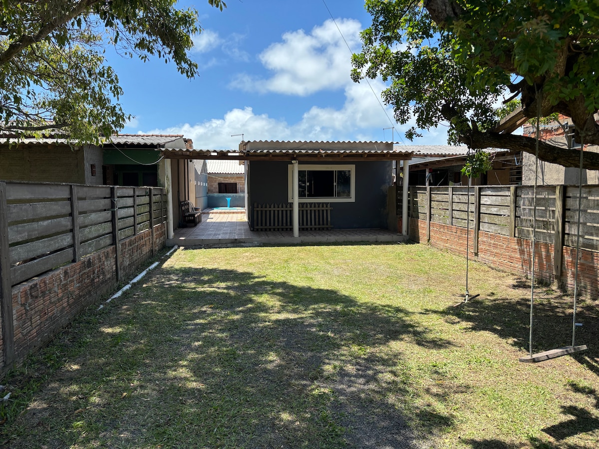 Relaxe com toda a família nesta acomodação super aconchegante. a casa é nova toda equipada. com dois dormitórios com ar condicionado, ventilador, tv, wi-fi, cafeteira, torradeira, liquidificador, microondas, Cooktop, todos utensílios de cozinha, casa toda em porcelanato. com churrasqueira coberta, tanquinho, piscina, pátio individual . Ao lado de Mini Mercado, 600m mar, rua super tranquila pra quem procura por descanso. local familiar.