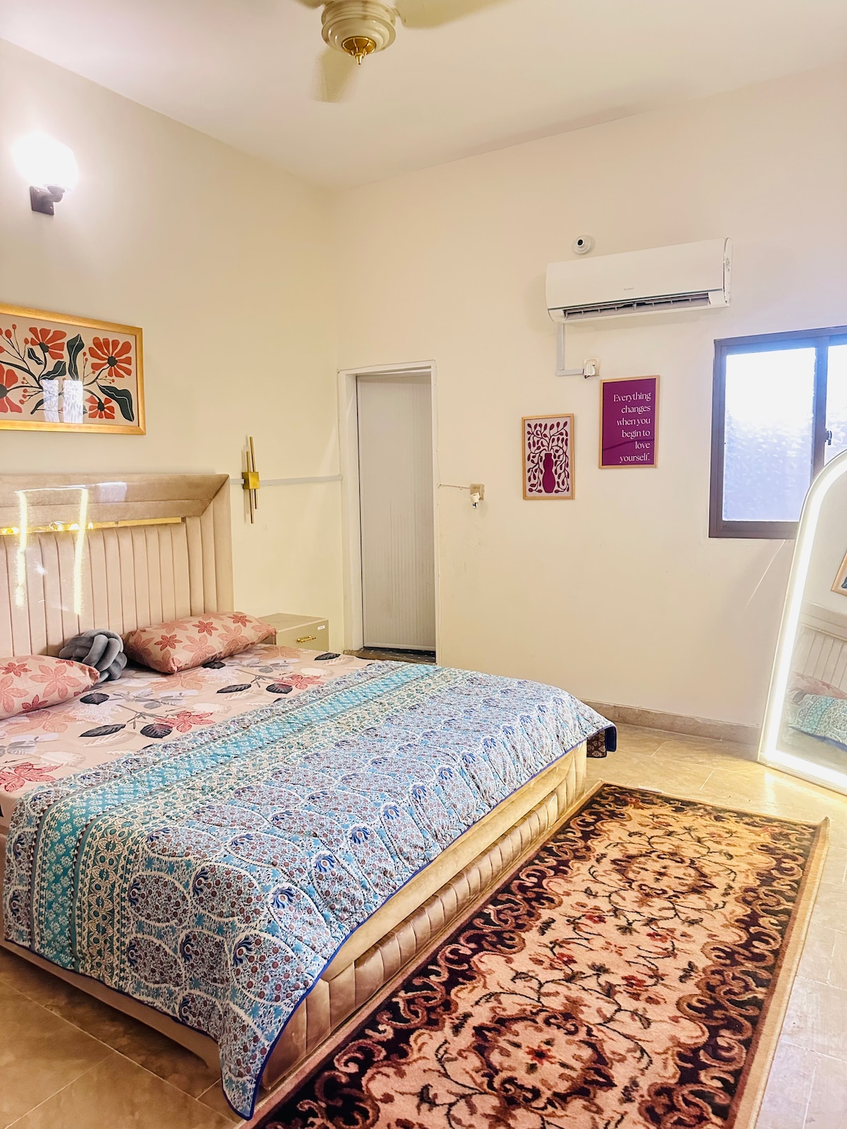 Welcome to your modern 2-bedroom apartment on Main University Road, Scheme 33, Karachi—just 10 minutes from Jinnah International Airport. Best Airbnb in Karachi ✅ 1 AC, 2 bedrooms with comfy king-size beds ✅ Fast Wi-Fi + Smart TV for work or streaming ✅ 24/7 power backup in a secure building ✅ Fully equipped kitchen & dining area ✅ Free parking inside gated premises Perfect for families, business travelers, and long stays who value peace, cleanliness, and quick access to the airport.